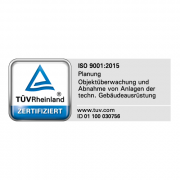 Wir sind für Planung, Objektüberwachung und Abnahme von Anlagen der technischen Gebäudeausrüstung vom TÜV Rheinland nach ISO 9001:2015 zertifiziert worden.