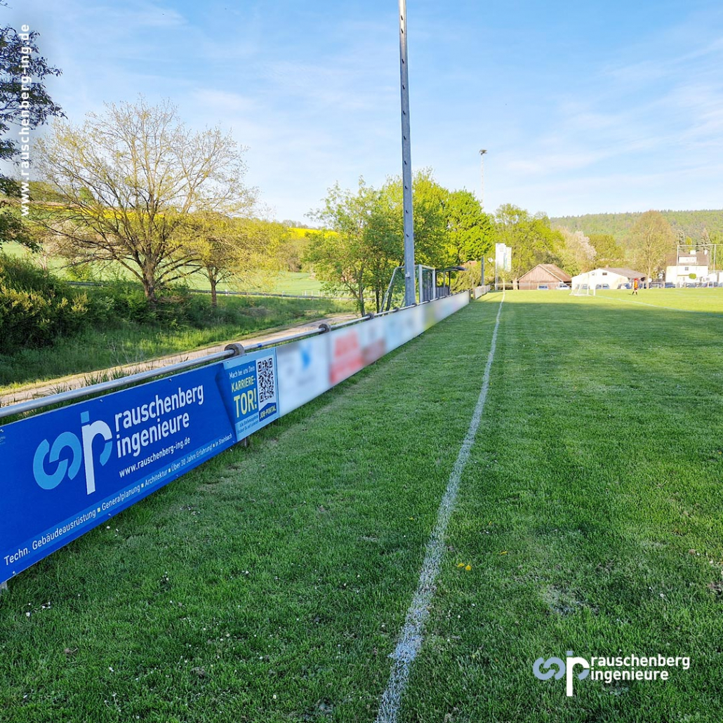 Seit Kurzem ist unser Logo am Sportplatz in Pfordt zu sehen – und das macht uns richtig stolz. Mit der neuen Bandenwerbung setzen wir auch hier als rauschenberg ingenieure ein klares Zeichen für unsere regionale Verbundenheit und unser Engagement für den lokalen Sport und die Nachwuchsförderung.